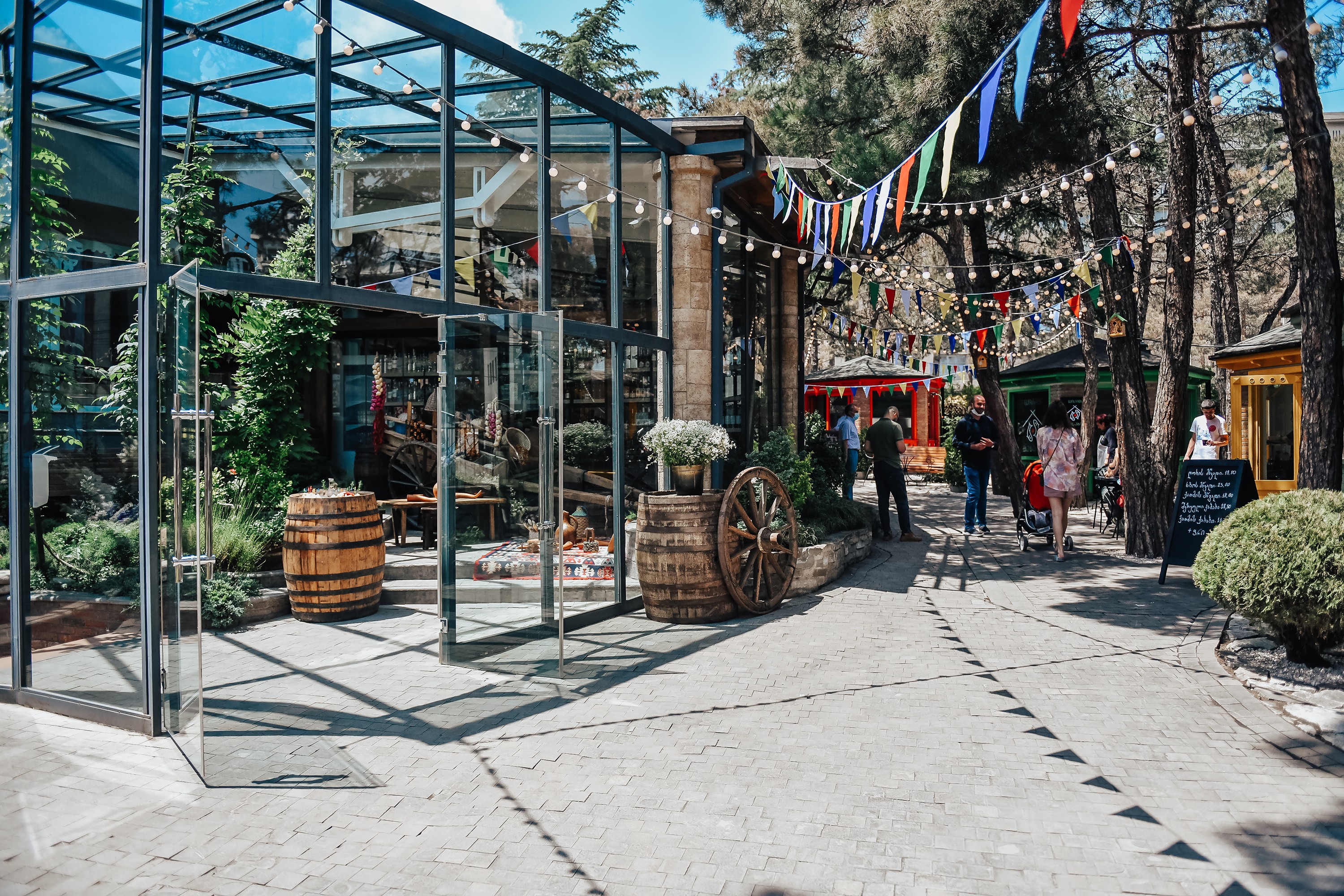 Here you will find delicious cuisine, meat delicacies and the best cheese corners. The smell of freshly baked bread wafts in the yard. Here you will be able to get acquainted with the products of famous European brands and, of course, real local Georgian products.