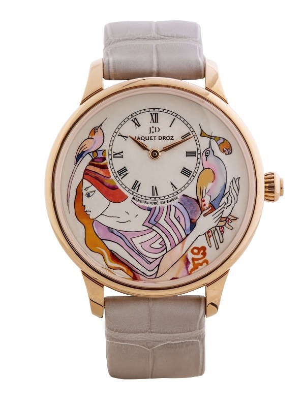 That’s why the brand’s key slogan is: “Some Watches Tell time, Some Tell a Story” Chronograph has used the opportunity and created an exclusive wristwatch of the world’s only Jaquet Droz, whose face is beautified by the artwork of Georgian artist Rusudan Petviashvili. The artwork is called The Woman with a Bird. “The project idea was born in 2019.