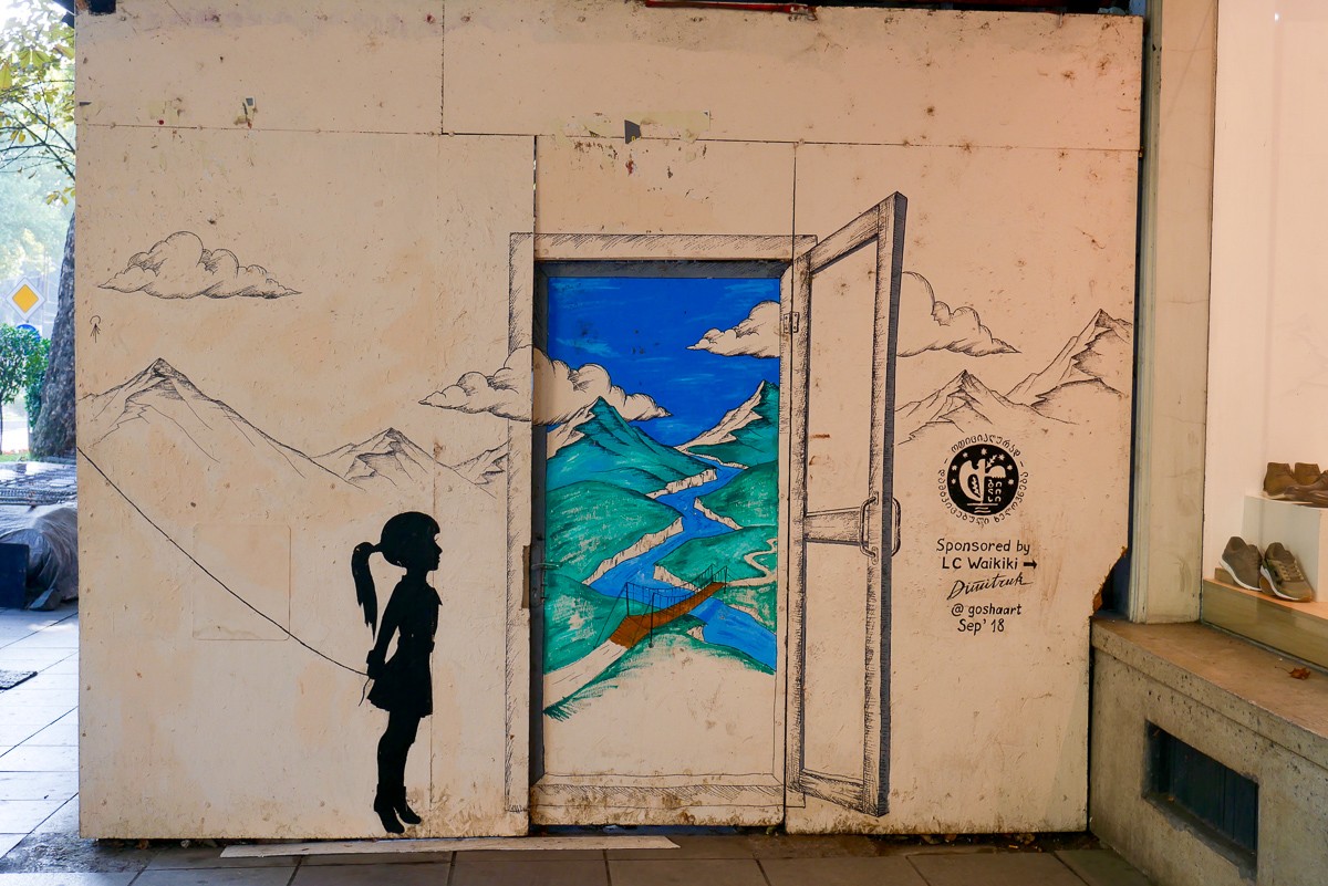 Therefore, I do not paint on the walls of buildings, on stone fences or on sidewalks. Temporary building fences, which in Tbilisi can stand for months and years, are quite enough for me. I also choose to work on bad-looking blind doors, gates in yards, ridiculous iron boxes, that are rusty and dirty. For the first few days, I only deal with cleaning and priming them. The art itself takes very little time at the very end of the work. But if it's not done, this object will again be vandalized quickly.