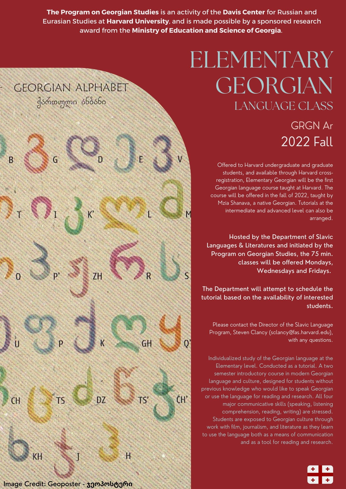 The classes will start in the fall, this year. The program on Georgian studies is an activity of the Davis Center for Russian and Eurasian studies at Harvard University.