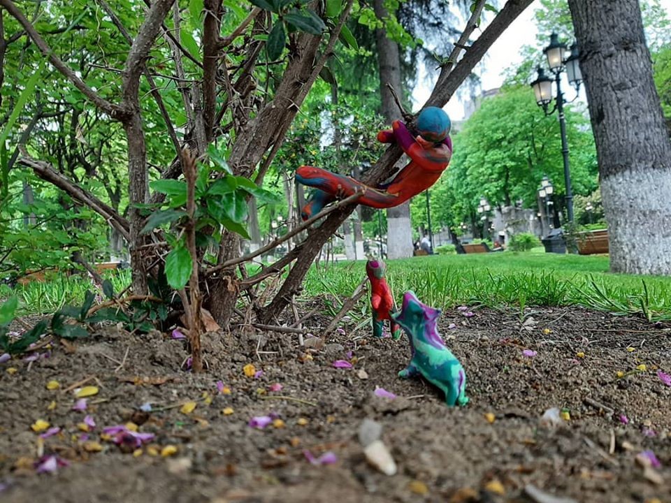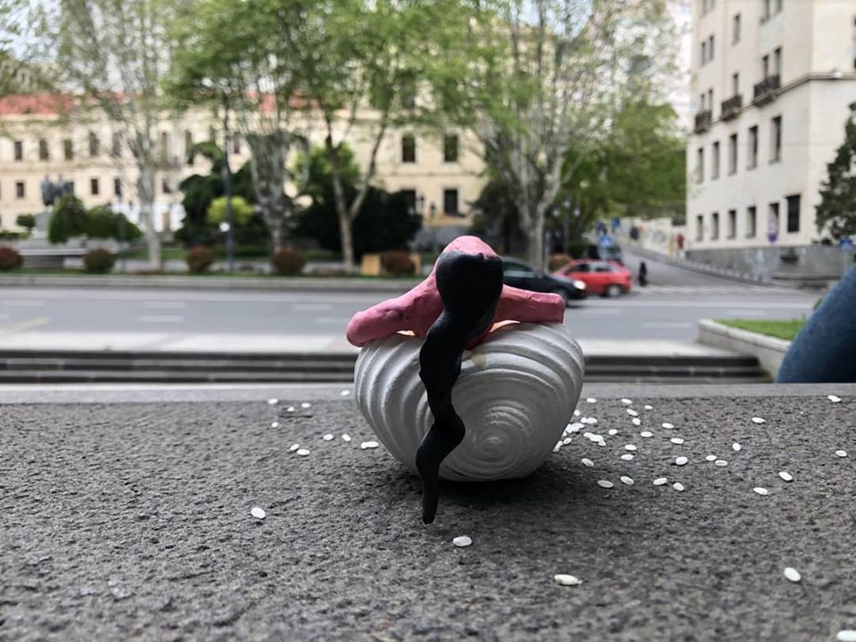 Gagosh is a Tbilisi based street artist. He is known for his grafitti works on different social topics around the city. This time, artist has shared sculptures that perfectly blend with the dyamics of surroundings.