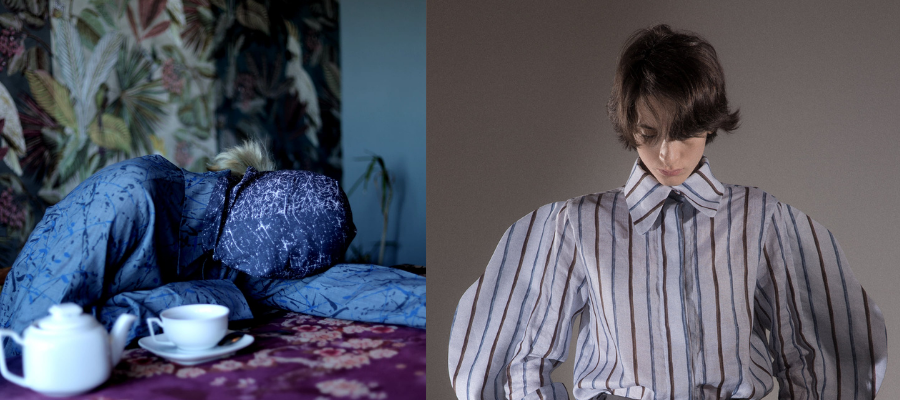 Specifically in this collection called "Continuum," there are techniques of zero-waste fashion, Shingo Sato, and origami processing. The theme of the collection is divided into two parts - vintage and futuristic. Also, I like the hand-painted prints on the fabric and the shibori, which I process with my technique so that such a product later becomes exclusive. It requires a lot of time and hard work. I mostly use natural fabric, but depending on the idea, I mix artificial if necessary. I do not use leather and natural fur. I try not to damage the world with my ideas and art, therefore I do not throw waste and give them a certain form. I have created several jackets with this technique, this is also a kind of character of my brand.