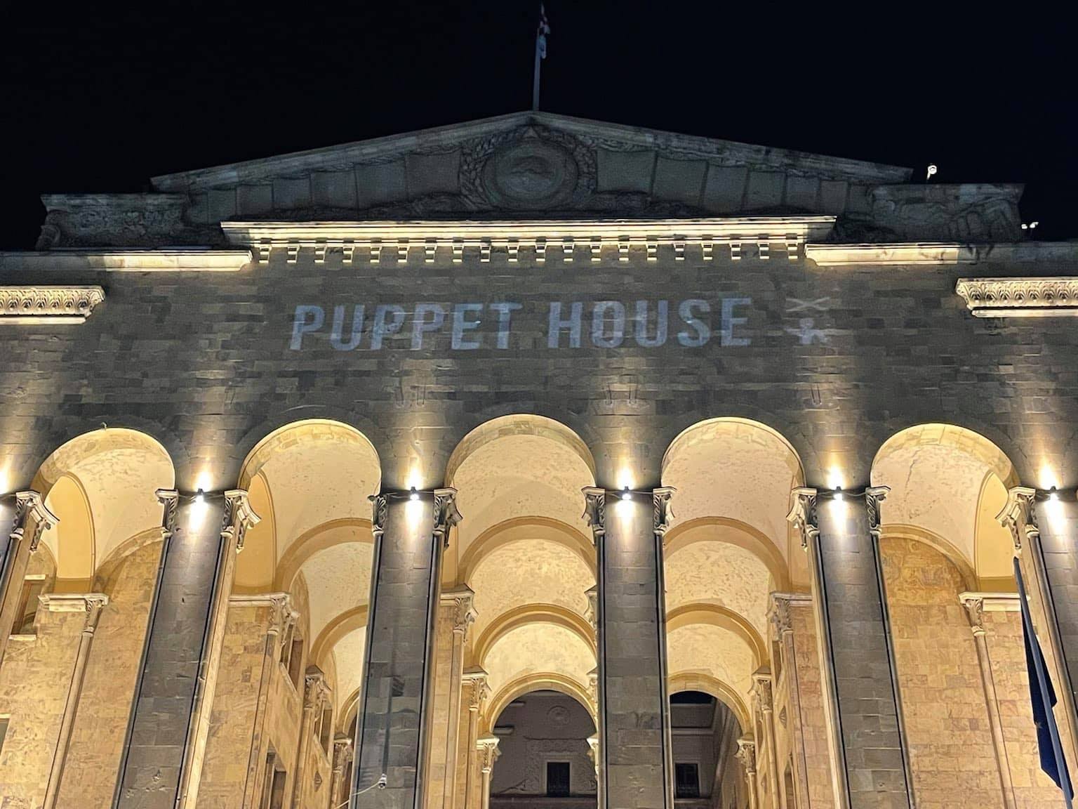 How did the Puppet House installation come about, and what was the significance of placing it on the Parliament building during the protest organized by the Georgian Journalists?