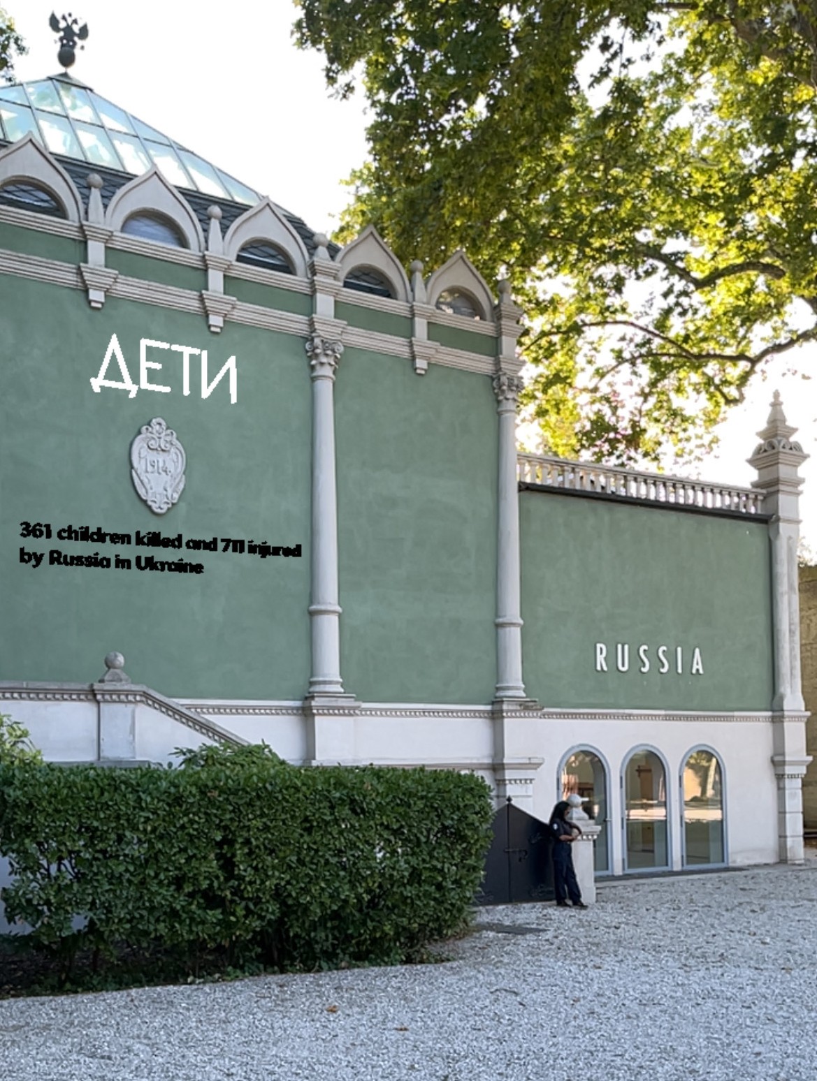 The world is in a digital informational and physical war. Ukraine fights for freedom, which also fights for our freedom. Big happenings like the Venice Biennale, I think, should definitely be used as a platform to spread information. The Russian pavilion has been closed since Russia's invasion of Ukraine, and security guards are on guard to prevent activists from attacking or damaging the building. Therefore, there was no opportunity for physical activity near the Russian pavilion.