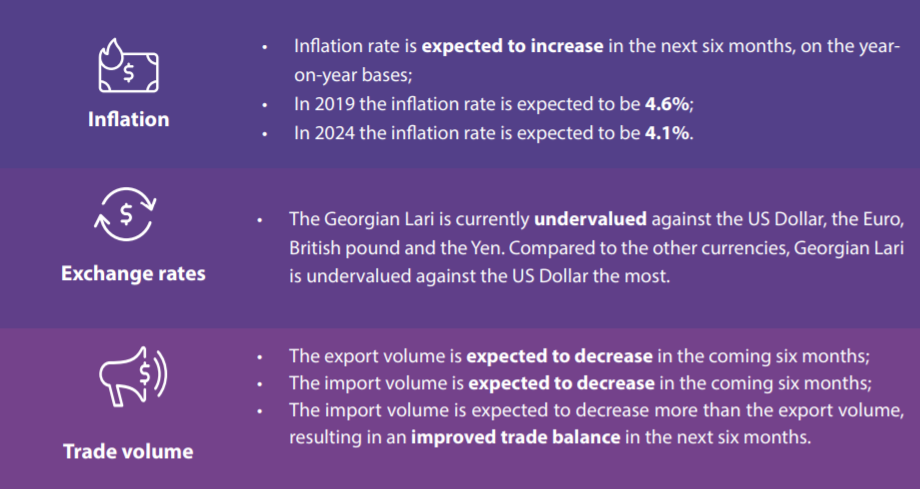In addition, experts predict Georgia’s main economic indicators. In the third quarter of 2019, the main economic indicators are forecasted as follows:
