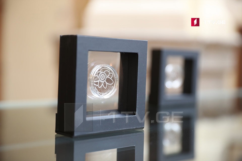 The coin representing nominal value of 5 GEL was revealed by the president of the National Bank.