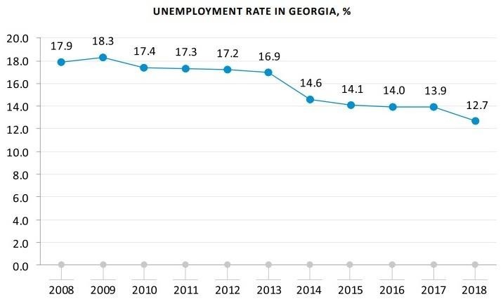 According to the final report by Geostat, the national statistics service of Georgia, the unemployment rate in 2019 shrank by 1.2%, to 12.7%.