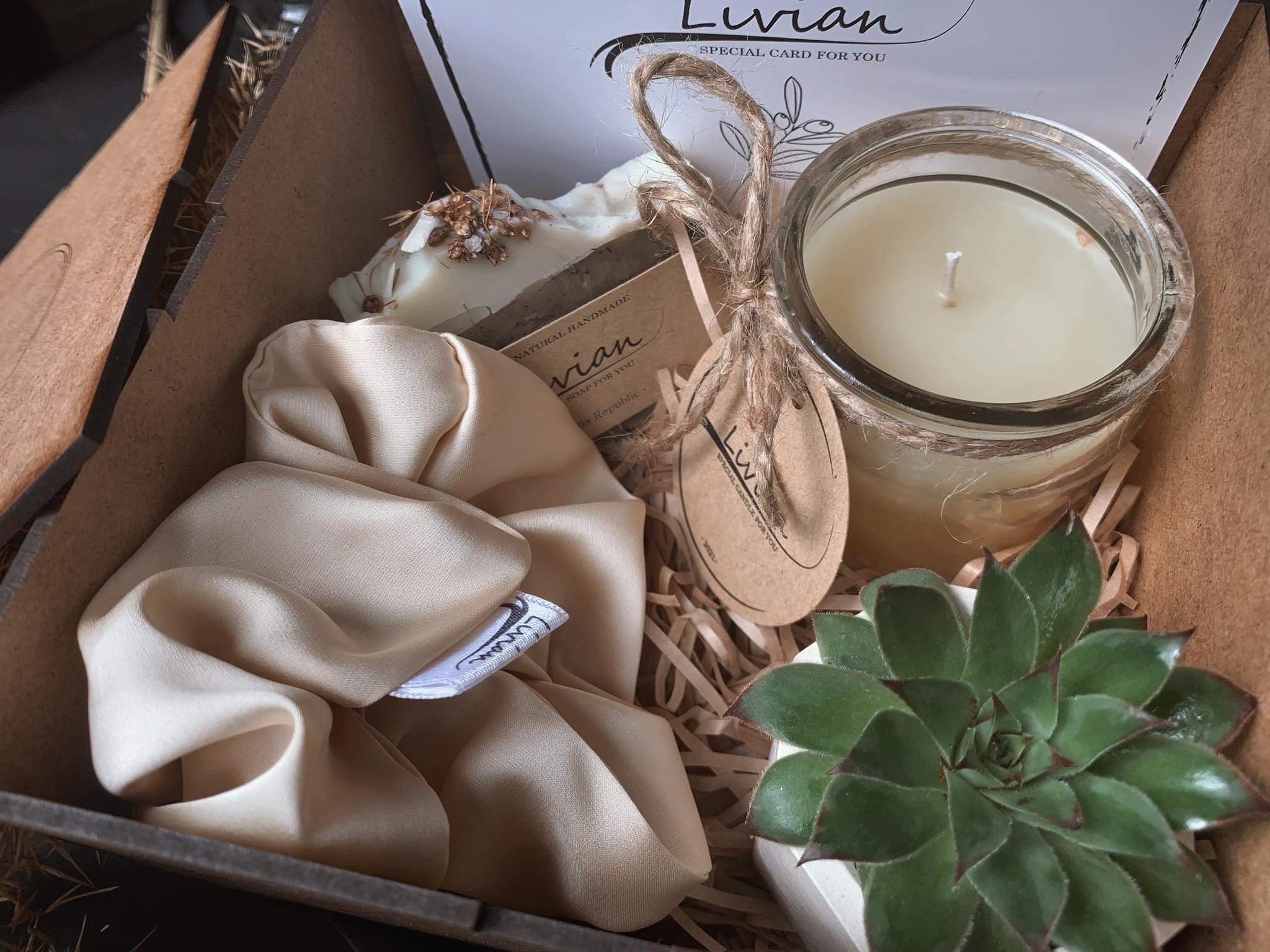 “We have created gift boxes for our customers, which include handmade soaps and candles, scrunches, and succulents. Everything is combined with the same color and aroma. The ethereal oils used in candles have their own purpose - they are used for aromatherapy. We do everything with great care, before we put the product up for sale, we check everything thoroughly.”, says Tamuna Kenchoshvili.