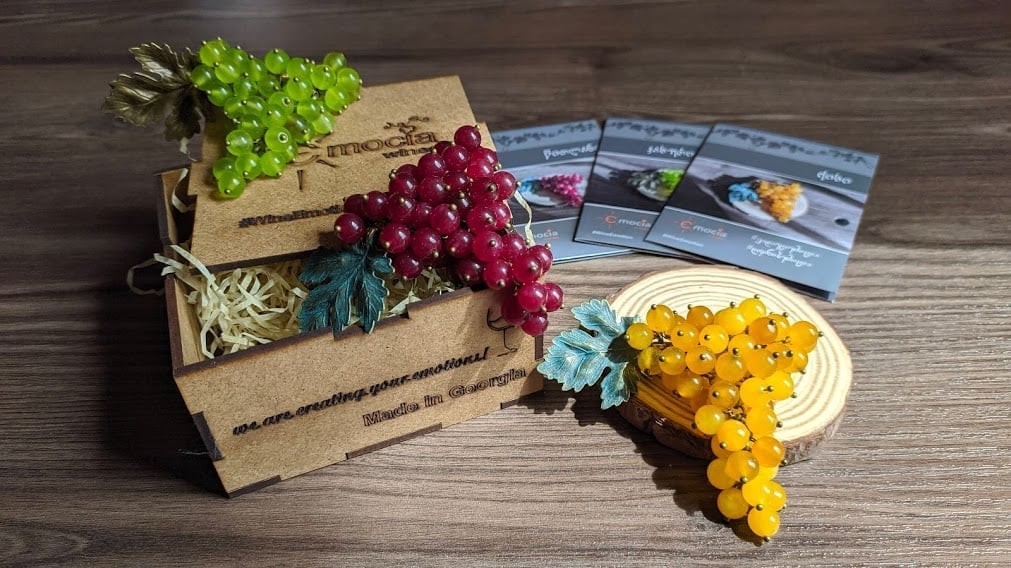 Currently, we have 10 varieties of grapes and each one of them comes with its own little passport in 8 languages, which tells the story of Georgia as a homeland of wine. We also have wine-themed bracelets, necklaces, key hangers, premium gifts for men and women, which are presented as souvenirs."