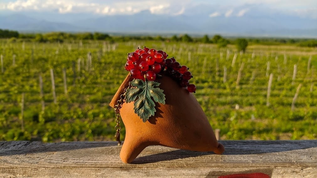 "I came up with an idea of creating Emocia Wines after graduating from Kabistoni Wine School. When I took an in-depth look at this field, I realized I could not make my own wine yet, however, I could have my own grapes. By that time, I already had my own brand - Emocia Handmade Jewelry, which makes handmade accessories from natural stones. Therefore, I decided to make grapes from natural stones. This is how our famous grape brooches were created - made of natural gemstones, which represent analogues of Georgian endemic wine varieties.