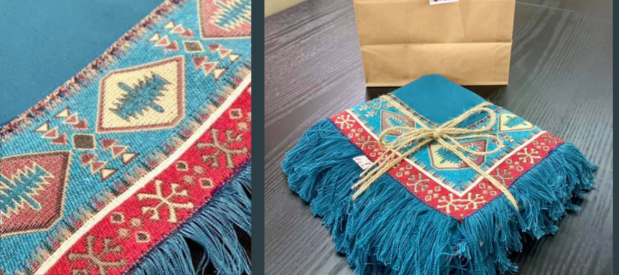 She lived in emigration for 8 years, working in an artist family. Once, before the landlord returned home, Nineli sewed and repaired all the damaged fabric she found at home. She put her old damaged supra on the table which she restored with modern elements. It took the landlord by surprise and encouraged her to keep creating beautiful things.