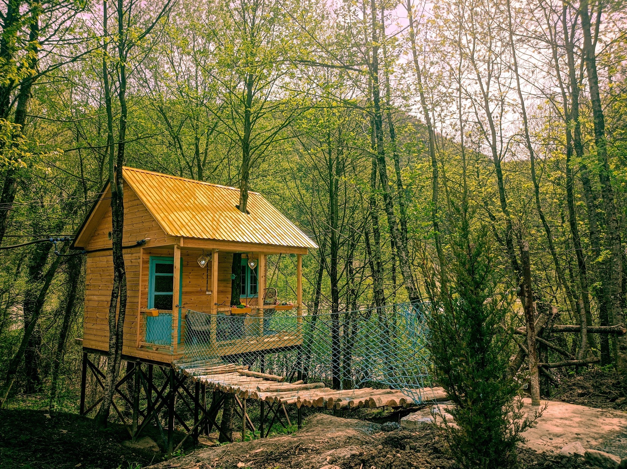 The cottage on the tree, which is designed for 2 people, is isolated and equipped with everything. The cottage has a small living room with panoramic views, kitchen, bathroom - also with panoramic views and a bedroom. The cottage has a balcony where you can enjoy the peace. Using the frame pool is also included the price, which is around GEL 200.