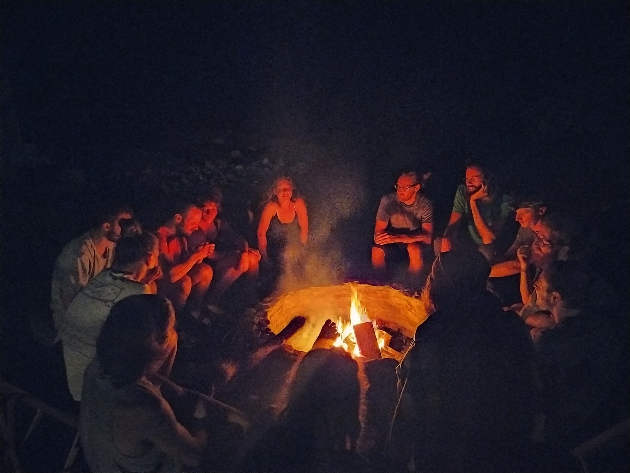 The campground is designed with function, aesthetics, and community in mind. The fire pit is the main gathering place where campers can meet each other, share stories and advice, and plan further adventures together. The kitchen is conveniently located next to the fire pit to promote group meals.