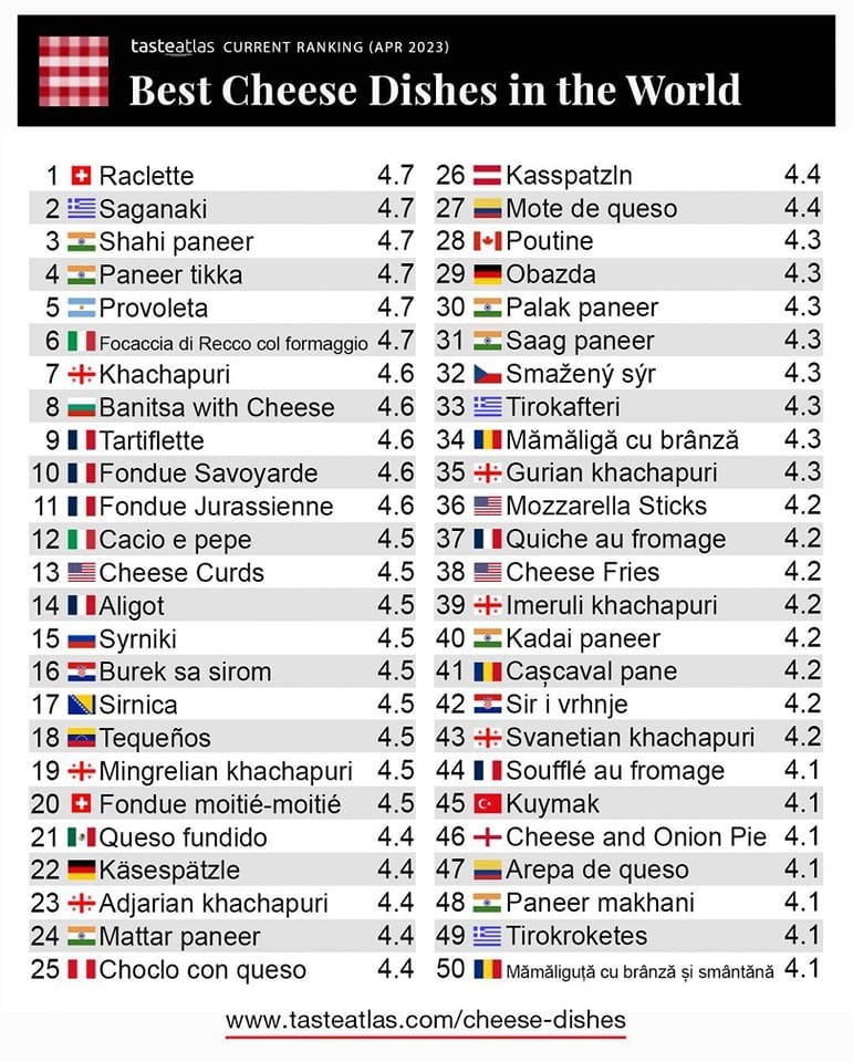 The top two spots on the list were claimed by Swiss "Raclette" and Greek "Saganaki", respectively. However, the strong showing of Georgian khachapuri highlights the country's rich culinary traditions and unique use of cheese in its dishes.