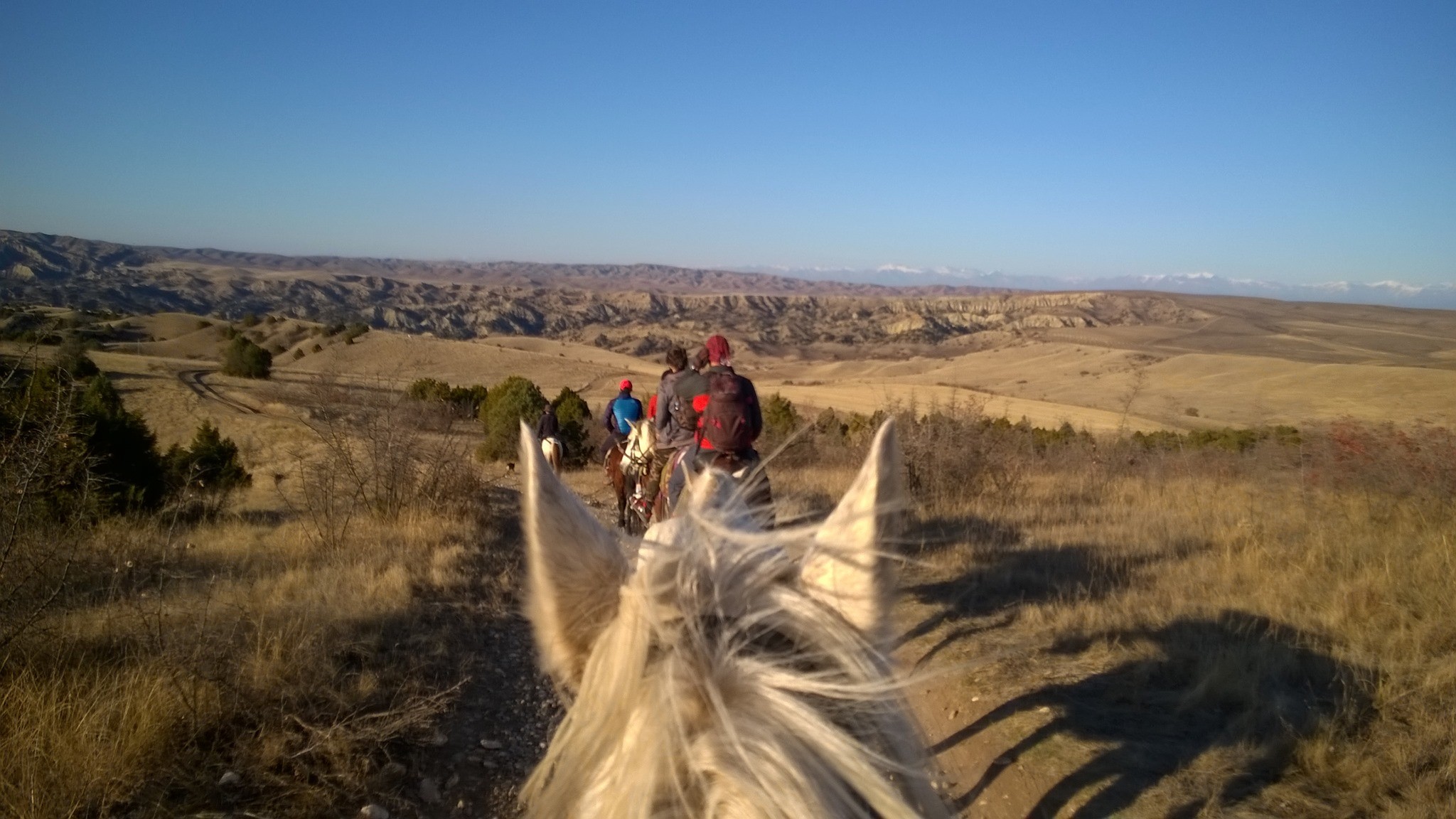 From October till May Soso and the horses live at the entrance of Vashlovani Nationalpark, where he offers a farm stay. The park entrance is just 2km away and the surroundings are steppe-like and the perfect place to free your mind. Day Tours, tours, in the Nationalpark, around or even to Dedoplistskaro (Elia monastery) or David Gareji – it’s the perfect starting point and the horses start from their beloved homelands. The local shepherds are all part of this as they and their sheep or cows are a big plus. Guests love visiting them and therefore sometimes the first time get to know the real-life of them. Vashlovani is suited for fast gallops but all tours serve all riding abilities.