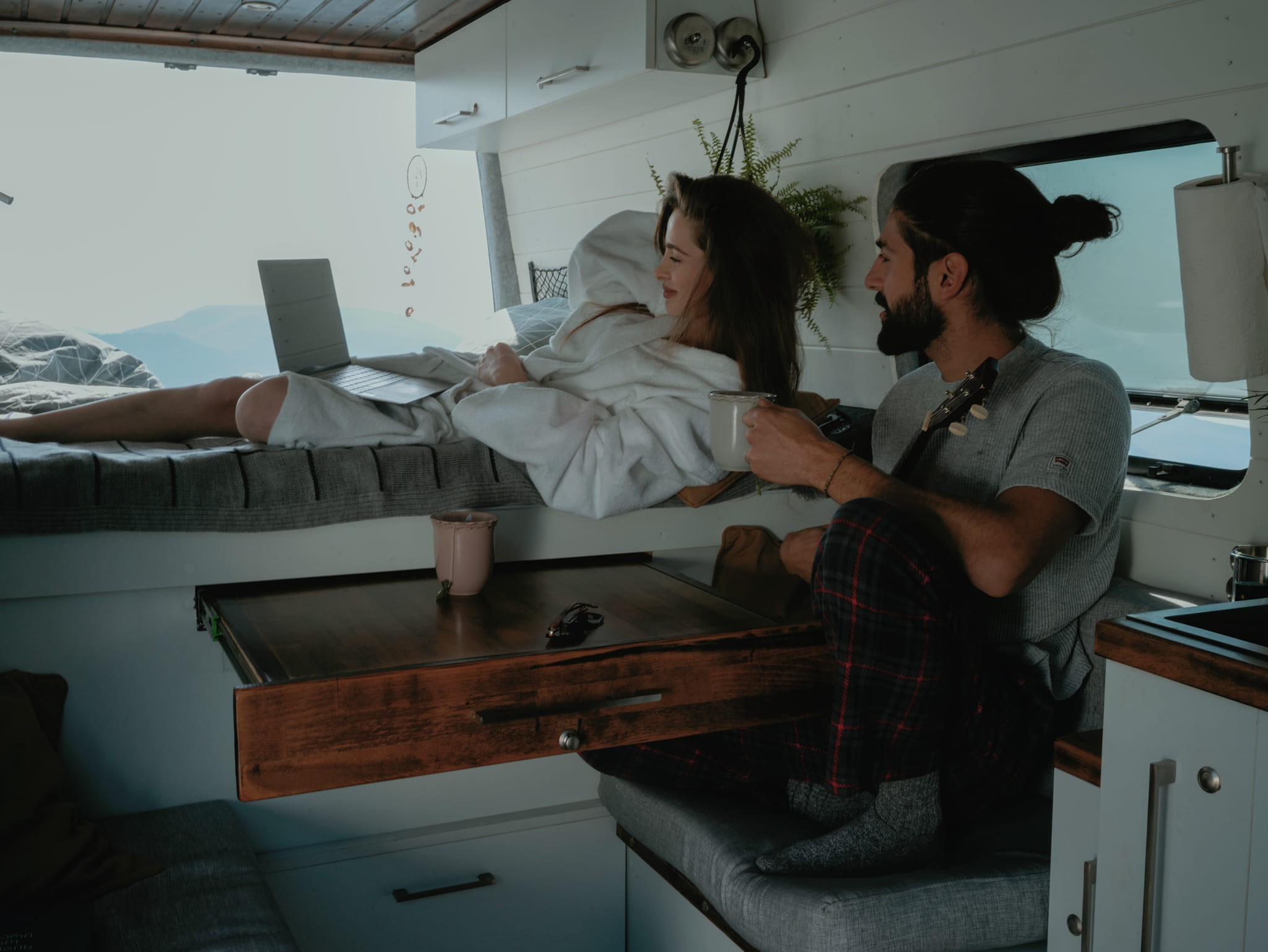 As the car is multifunctional, in addition to travelers, our customers can be a newlywed couple who will spend their honeymoon in different parts of Georgia, participants of the expedition, who can easily camp at the desired location. Music-loving young people who will go to country festivals and be provided with transportation and accommodation. We also collaborated with the film crew who used the caravan as a trailer for the actors. It is also a very useful way to work remotely, for those who are tired of the daily routine and want to escape the noise of the city.